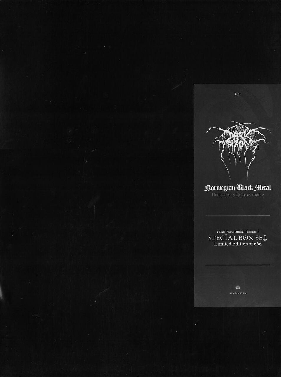 BLACK DEATHのZephyrous氏、元SATYRICONのNocturno Culto氏、そしてNEPTUNE TOWERSやVALHALL、ISENGARD、STORM、BLACK DEATH、FENRIZ' RED PLANET、REGRESS FF、FUCK YOU ALL、そして元DODHEIMSGARD等のFenriz氏によるノルウェーのブラックメタルバンド、2005年5月20日(金)から6月5日(日)まで開催されていた写真展「Norwegian Black Metal photographs by Peter Beste」で販売されていた、Tシャツ+キューブリック(KUBS185)+缶バッヂ+ポストカード2枚が入ったB4サイズのボックスに同梱されている、帯・解説・ステッカー封入の黒い特殊CDケース仕様の2005年のミニアルバム。